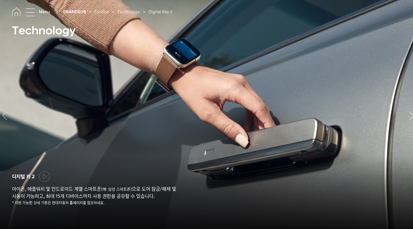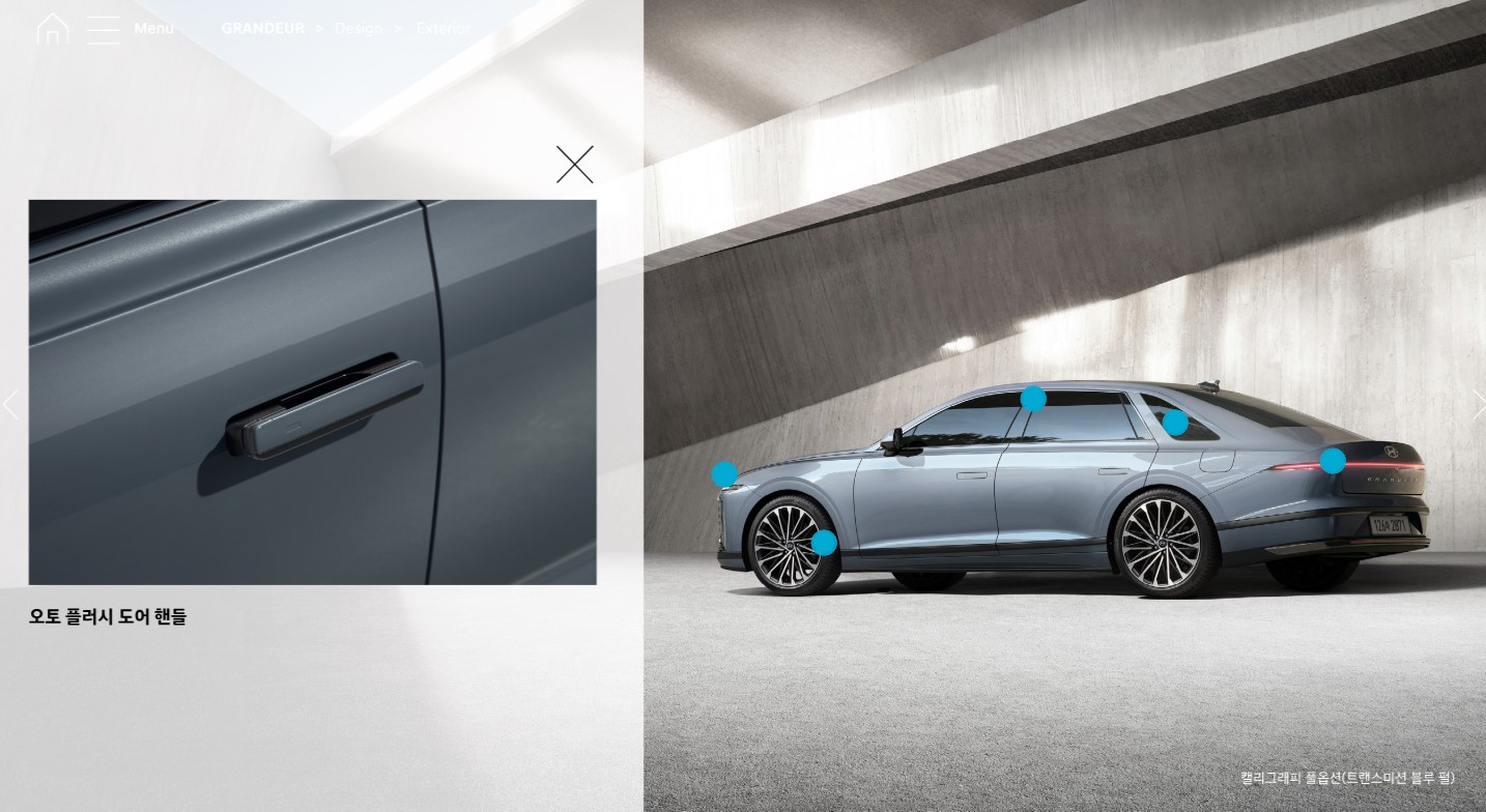 요즘 대세인 오토 플러시 도어핸들이 적용되어 있고 아이폰, 애플워치, 갤럭시로 도어 잠금 및 해제와 시동이 가능한 디지털키 사용이 가능하다.