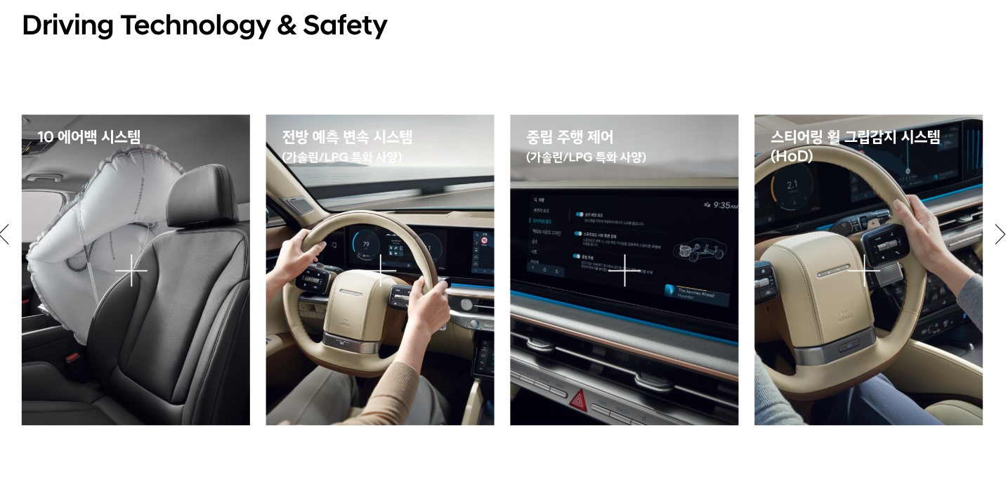 에어백시스템을 당연하고 전방예측시스템, 중립주행제어, 스티어링 휠 그립감지, 후진 가이드 램프 같은 사소한 부분에도 많은 것 들을 제공한다.